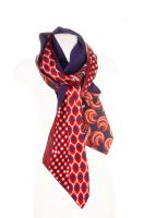 Stola realizzata a mano con cravatte vintage. Le cravatte sono state smontate, private dell’anima interna e aperte. La forma particolare della stola, più larga al centro e più sottile ai lati (cosa che rende più agevole annodarla) è determinata proprio dal modo in cui le cravatte vengono accostate. In questo modo viene preservata la loro forma originale, rimanendo riconoscibile. Ogni stola è foderata in cotone o seta (prevalentemente in tinta unita) per dare maggiore risalto alla fantasia delle cravatte che la compongono e maggiore struttura.