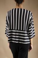 Maglia optical a righe bianche e nere, taglio komono. Corta e leggera, è perfetta sia su un pantalone che su una gonnellona.