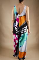 Tuta oversize con una fortissima personalità dovuta alla sua fantasia prorompente di pois di tutte le dimensioni e di tutti i colori, perfetta per chi non ama passare inosservata e sa osare.