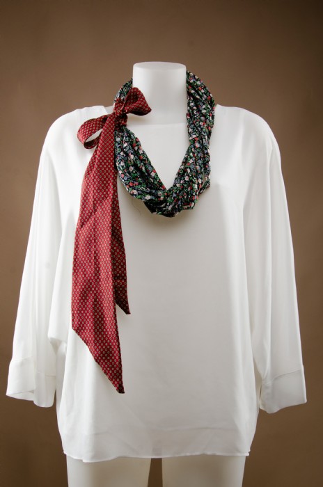 Dall'incontro fra la morbidezza di un foulard e il rigore di una cravatta, dall'equilibrio fra la la raffinatezza della seta e la semplicità della maglina, dal contrasto fra le diversità che si uniscono, nasce MIA, il nuovo accessorio Vipuntozero a metà fra una collana e una sciarpa.