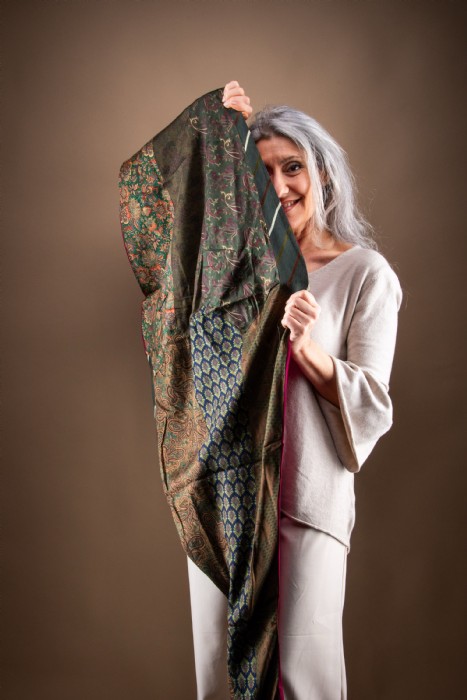 Colore:Fantasie varie sui toni del verde, fodera amaranto